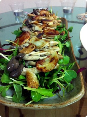 느타리버섯샐러드에요. 베이비채소 위에 구운 느타리버섯 올리고, 마늘 구운것 올린다음에 소스만 뿌리면 끝! 소스는 발사믹 식초에 꿀 한스푼 넣고 조려서 약간 걸쭉해지면 소스도 끝! 입맛을 확 살려주는 아주 간단하고 좋은 샐러드! 물론 칼로리도 착하구요^^