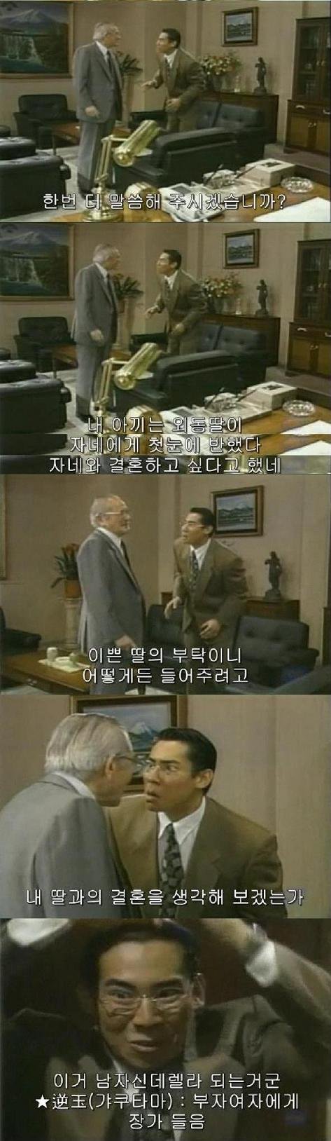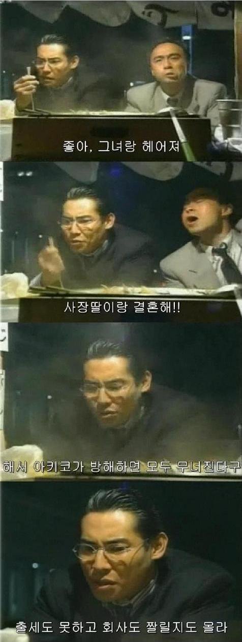 상담해주는 친구는 사장딸과 결혼 하라하지만, 그렇게 되면 현여친이 방해를 해 출세랑 직장과 바이바이해야될꺼라 생각하는 남주.