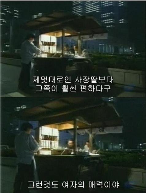 다음날, 포장마차?에서 친구와 술한잔 하며 상담을 하는 남주.
