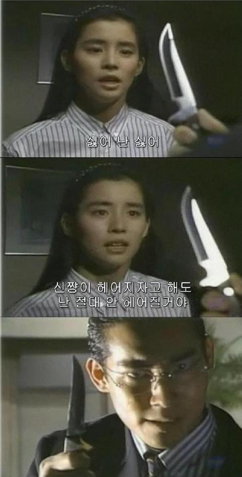 바로 여친을 죽이는것. 그 첫번째는 칼로...