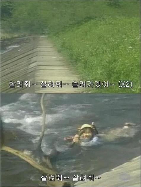 발을 헛디딘 여친이 강에 빠져 나뭇가지에 간신히 메달려있음 ㅠ