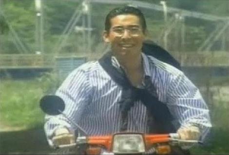 점쟁이가 준 시간을달리는스쿠터를 타고 과거로 향하는 남주.