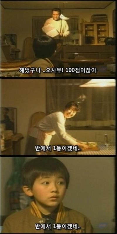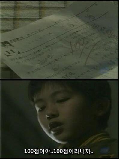 처음으로 100점 맞은 시험지를 펼치지만, 남주를 칭찬해주는 부모님이 안계시다는것에 우울함을 느끼는 남주.