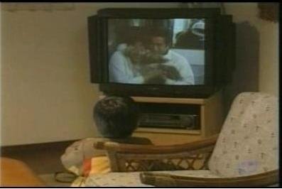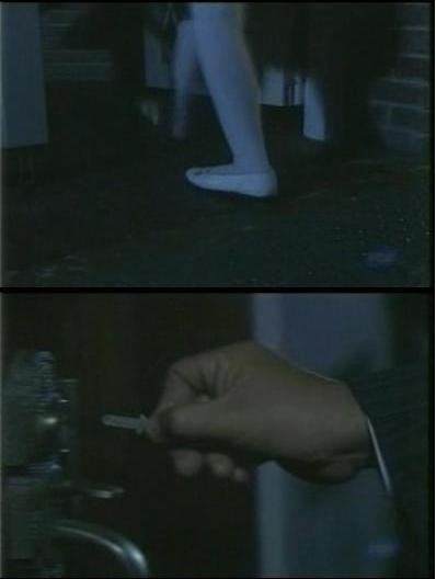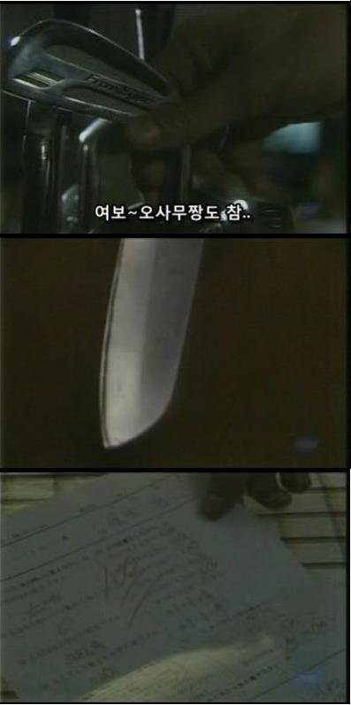 그렇게 남주가 비디오를 보고있는 사이 누군가가 소리없이 집에 침입해 부엌칼과 골프체를 집어들곤, 남주가 있는 거실쪽으로 천천히 향함.