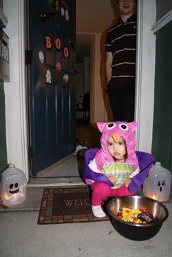 혼자 문 앞에서 나뭇잎한테 바이~ 하고 인사하며
