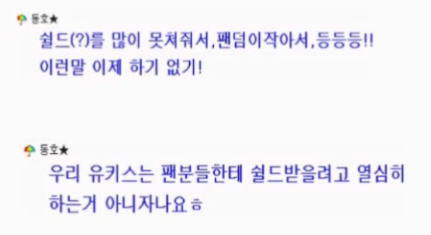 다른분들께서 관심이 없어서 그런지... 유키스 팬서비스도 모르면서 안좋다고하시는분들이 계셔서