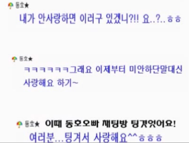 그리고 특히 동호! 돈크라이마미 연기요..그거 몇년전에 찍은영화라 조금 그럴지 몰라도 올해 홀리랜드때는 돈크라이마미때보다 훨신발전햇거든요