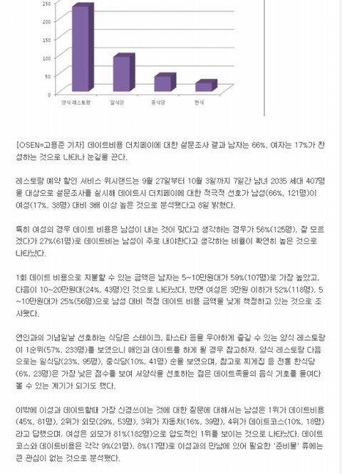 왜 여자들이 더치하는척 하는줄아냐 인터넷에서?? 욕안먹을려고 ㅇㅇ 판년들이 한국여자 욕하니까 빡쳐가지고 더치 하지도 않으면서 내주위엔 더치하는 사람많다. 니네가 그런 여자만 만나서야 ;; 이 지랄하는거 ㅈㄹ 어떤 여자가 더치하냐 인터넷에서 하는말보면 한국여자는 다더치하는것 같다. 그러나 10/1이다 현실에선 아주 안흔해 판년들은 그저 욕안먹을려고 더치한다고 구라치는거다 남자의 눈치를 보는거지 여자만 모여있는 여초사이트 쭉방 여성시대 가봐라 더치하면 찌질하다고 대놓고 말한다. 여자들끼리만 모이니 속마음이 드러나는거지 태클걸 남자도 없으니 반면 판에는 남자가 꽤많아졋다 판 2010년 초만해도 거이 여자만 주로있었는데 그떈 판남도 별로없으니 태클도 별로안거니까 대놓고 더치 ㅉㅉㅉ 더치하자는 남자 찌질 이런글이 대놓고 있었다 판녀의 이중성이란 글도 유명했찌 솔직히 판남들 판녀의 이중성이란 글 보고 판에 많이왔을거다 그러다보니 판남이 많아지고 판녀 보1슬들을 공격하니까 판녀들이 갑자기 욕먹으니까 더치한다고 구라치는거다. 인터넷에서 더치한다는 여자들보면 현실에선 남자선배한테 밥사주세요 이지랄 떨고있는게 90%다 인터넷보면 대다수 여자들이 더치할것처럼 보이더니 현실에서 봐라 83%나 더치페이 글쎼라고?? 시1발 여자들의 속마음이 잘드러나있는 기사다