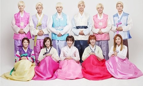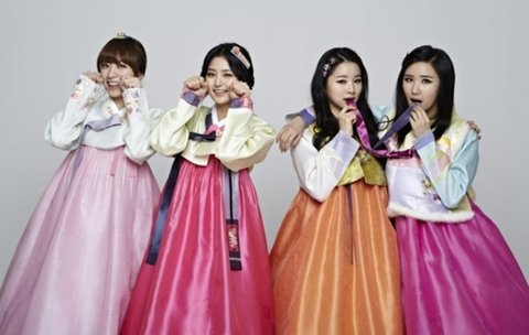 마지막으로 한복입고 귀여운 포즈와 섹시한 포즈를 하고 있는 신인 그룹 EXID