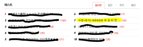 47. 천지가 수퍼럽에서 "수퍼러어어어어업~"하는부분에서 삑사리 4번인가? 냇는데 천지 연관건색어에 떳음