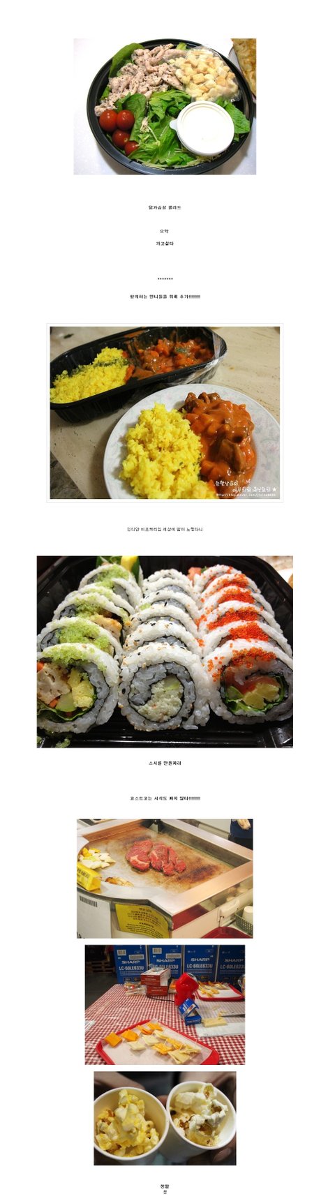 제가 생각하는 코스트코 성공의 비결 1. 수입제품이 많다. 2. 품질이 좋다.(신선육, 과일 등. 어머니 왈 농협 하나로클럽보다 더 좋은것도 많다고.. 3. PB상품의 경쟁력이 좋다. 코스트코의 PB상품은 KIRKLAND(커크랜드)인데, 제빵부분이 커클랜드이죠. 근데 국내대형마트 PB는 가격이 싼만큼 품질도 좀 떨어지는데, 커크랜드꺼보면 빵이나 케익보면 가격도 착한데, 질도 엄청 좋음, 4. 시식을 아끼지 않는다. (홈플같은데 가면 수세소시지도 조각조각 내고, 먹을만큼만 잘라놓아서 얄미울 때가 있는데 코스트코는 시식이 거의 풀어놓고 먹이는 수준 ㅋㅋ 뭐든지 큼직큼직하게 잘라줌. 언젠가봤는데 만두도 한개씩, 굴도 한개씩, 과자는 크기에 따라 몇개씩 줄때도 있고, 예전에 생크림 소보로 잘 안팔렸는지 그 큰거를 1/4씩 잘라서 넣어줌 ㅋㅋ)