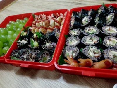 허접한남친도시락 1 흑미김밥등등..