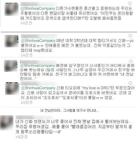 21. 어떤 신창분은 신화에게 자기를 기억하게 하고 싶어서 만날때마다 싸인 받지는 않고 싸인을 해주셨다곸ㅋㅋㅋㅋ어느날 김동완한테 여느때와 같이 싸인하니까 "이미 받았어요^^",신혜성한테 싸인하니까 "집에 6장있어요^^" 기억은 확실히 하는듯ㅋㅋㅋㅋㅋㅋㅋㅋㅋㅋ