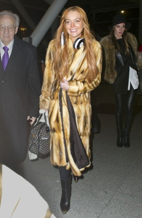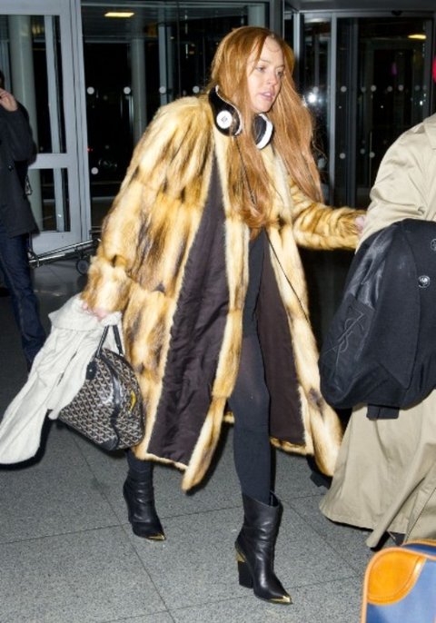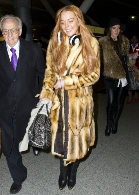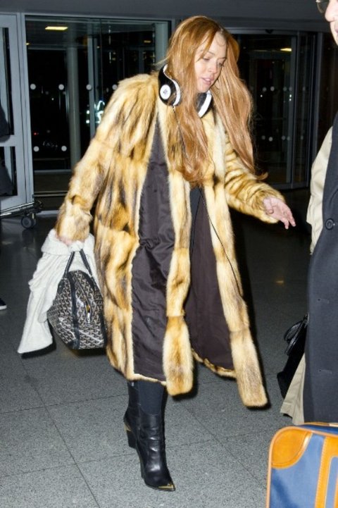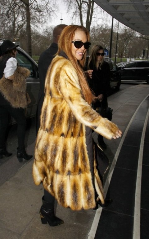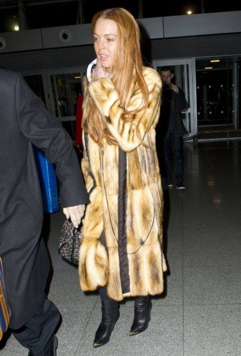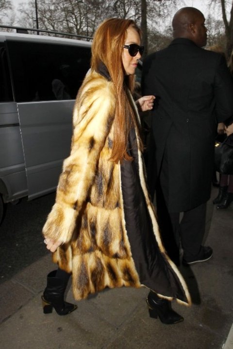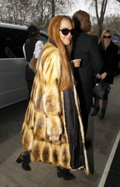 용감?하게도 진짜 거대한 모피를 입고 등장한 린제이 로한