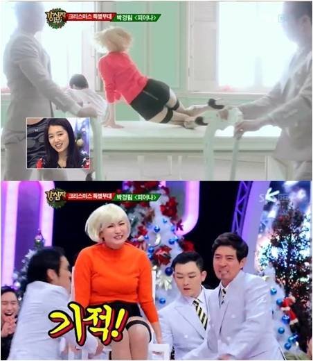 강심장 크리스마스 특집에서 가인의 피어나를 패러디한 박경림과 붐
