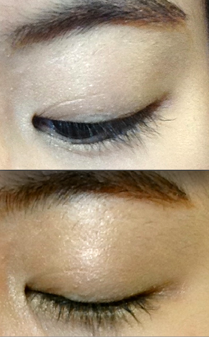 4. 그다음, 3번제품을 쌍커풀 라인까지만 발라주세요 (4번제품을 발랐던 표시보다 반!)