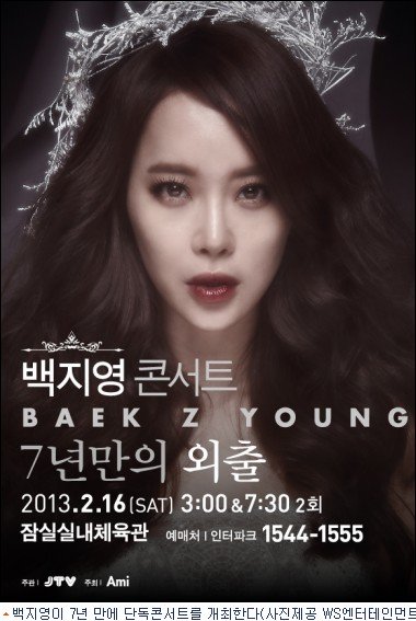 콘서트를 펼친다고 하네요 이번 공연은 2006년 ‘백지영 라이브콘서트’ 이후 7년 만에 개최하는 단독 콘서트라 저 떨리고 긴장되고 기대도 많이 되는것 같아요