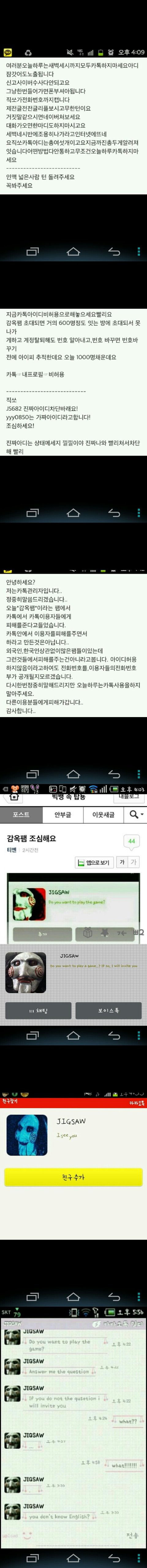 갑자기몇시간전부터카스에직쏘예기랑감옥팸예기가나오더라구요