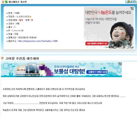 나중에 방통위 신고 크리 먹게 생겨서 영자가 게시판 없앴지만