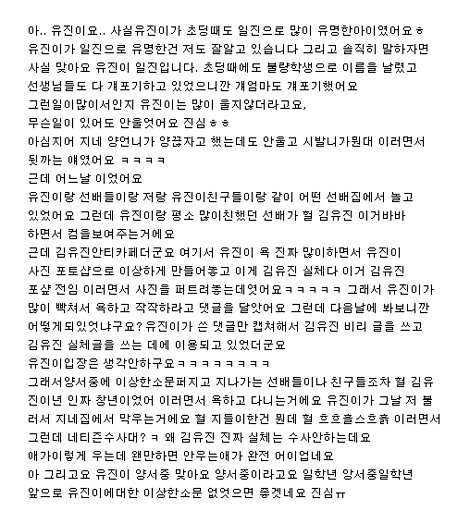 김유진친구최봄이 김유진에대해 직접쓴글