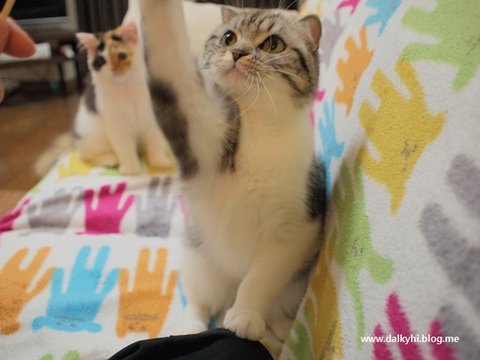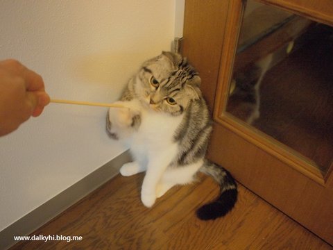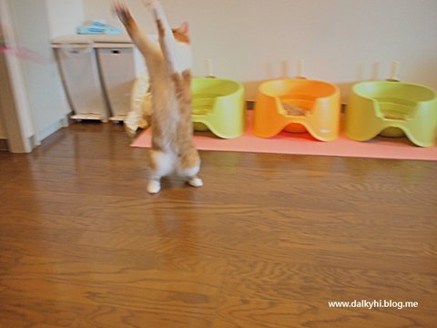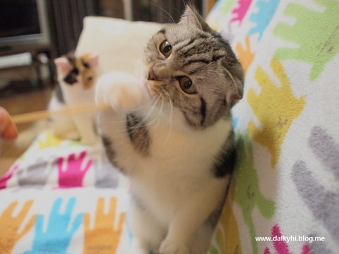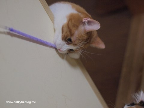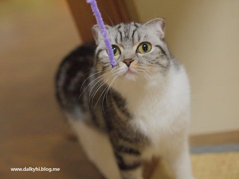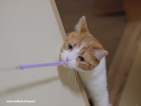 바로 반응합니다~ 솔직히 퐁즈는 비닐끈 모래 알갱이로도 쉽게 낚이는 아주 쉬운 고양이~
