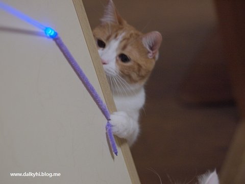 그냥 지렁이 장난감이 아니라 봉에 현란한 불빛이... 우리 시골냥이 한번 보고 뻑갔네 그려..