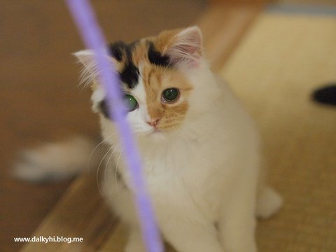 깃털 장난감놀이에 정신이 없네요~