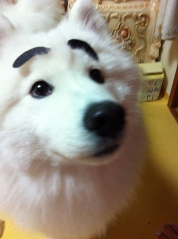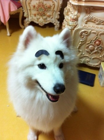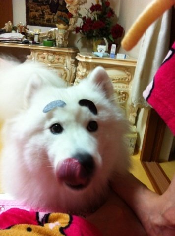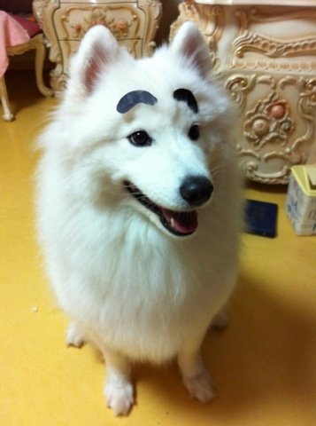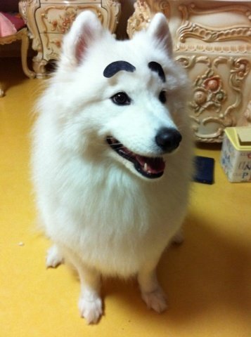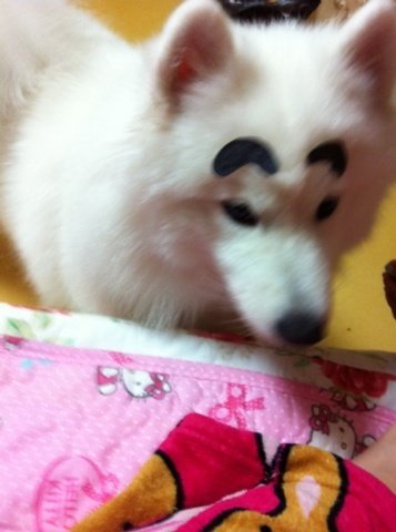 근데 전 우리 하얀콩이 털에 검은칠은 못하겠더라구요 그래서 검정종이를 잘라붙였더니 ^^