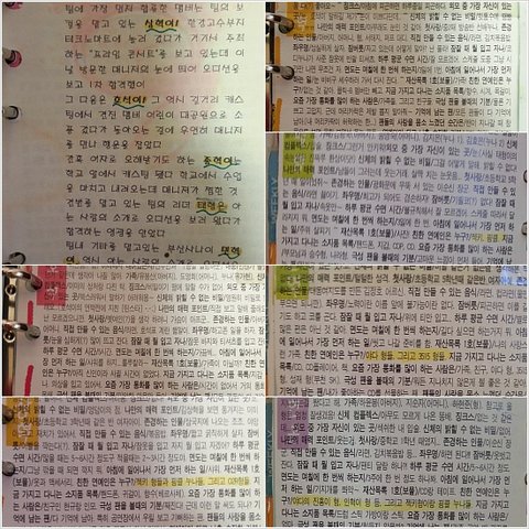 (하나하나 저라인으로 잘라서 붙여놓는 정성 ... ㅜㅜ 공부를 저렇게 했어봐라 ㅠㅠㅠ)
