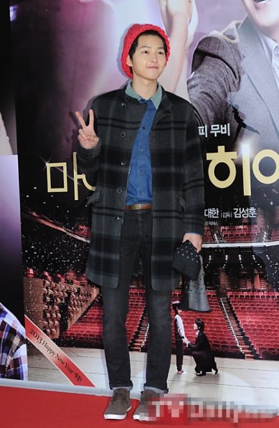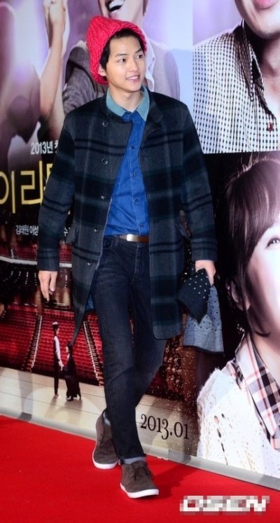 시사회장에 기껏 이쁘게 입고는 이상한 모자를 뿌린 송중기 어제자 패션ㅋㅋㅋ