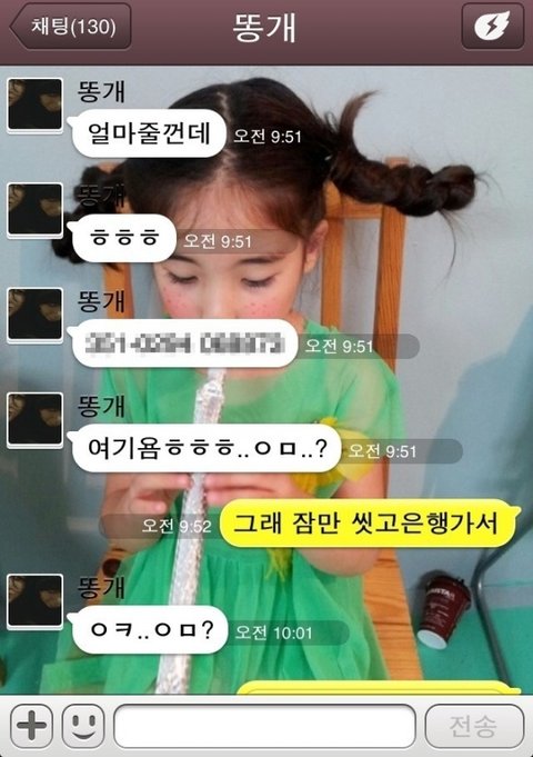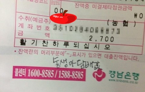 난 돈을 붙이고 동생한테 카톡을 보냄..