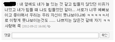 마무리로 예전에 커플 다이어리에 제가 쓴 글에 남자친구가 댓글 달아준 거 남기고 갈게요....ㅎㅎㅎ