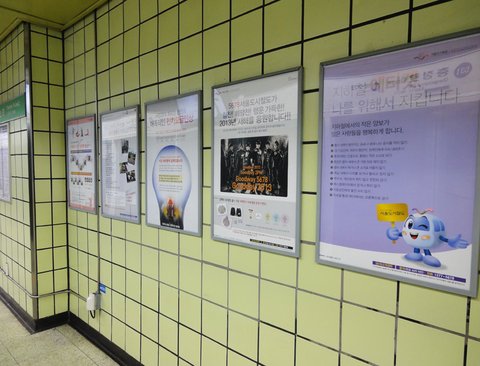 이렇게 스크린 도어마다 두 개 걸러 하나씩 쭈~욱 붙어있음!!