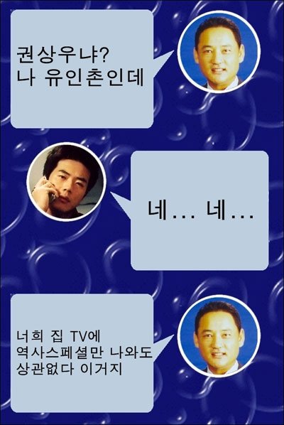 ☎나 유인촌인데 너희 집 TV에 역사스페셜만 나와도 상관없다 이거지?