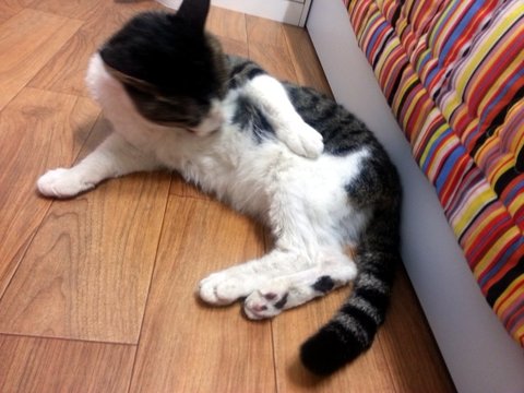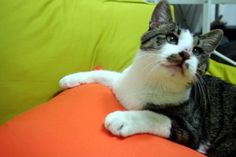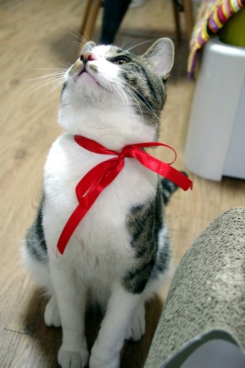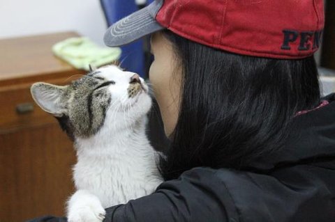 어찌나 능청스럽게 제옆에 와서 부비부비하다가 저에게 갑자기 막 달려들어 안기는 폼이 집에서 이쁘게 키워졌던 녀석이었던 것 같습니다 담날 가보니 또다시 밥 옆에서 절 기다리다가 뛰어오는 녀석. 무릅에 냉큼 올라오는 모습이 안쓰러웠지만 그대로 내려놓고 오고 말았습니다 녀석을 냉큼 데려갈 곳이 없었으니까요… 며칠후 녀석의 모습. 얼굴이며 목주변 할 것 없이 상처투성이며 좀 힘들어하더군요.. 길에 사는 다른 녀석들에게 치여선지 더 이상 길에서 살기 힘들겠단 생각이 들었습니다 그날따라 절 쫓아오는 녀석… 이것이 녀석을 본 마지막이었습니다 매일 녀석을 찾아다녀도 안보이는게 다른 냥이들에게 쫓기어 다른지역으로 밀려놨든지 아마 잘못 되었든지.. 각가지 생각에 맘이 너무 안좋더군요… 그로부터 2주후 저의 동네 포획하시는 분이 전화 오셨습니다 지나가는 사람마다 따라다니는 냥이 한마리가 있다고요,. 어느분이 고양이를 싫어하시는데도 자꾸 고양이가 달려들어 부비부비 하니까 민원을 넣어서 잡아가라고 하셨다고요.. 아이가 사람손을 너무 타서 그냥 보호소행 아이로는 아깝다고 생각하시고 연락을 주셨습니다 근처 병원에 두고 가셨다고요... 밤에 병원에 들어가자마자 절 반기는 녀석. 바로 그녀석이었습니다 너무도 수척해보이고 얼굴에 물린 상처하며 행색은 너무도 초라해보였지만 녀석. 성격만큼은 여전하더군요.. 사람만 보면 얼굴 들이대며 눈을 지긋이 감고 볼에 뽀뽀하는 녀석.. 늘 눈감은 표정이 개그맨 남희석씨를 닮은 것 같아 이름을 희석이라 지었답니다 ^^ 사진을 찍으려면 카메라에 얼굴을 들이대고 해서 사진 정말 찍기 힘들었답니다 또 현재 임보자가 집에오시면 다른 냥이보다 맨 먼저 현관까지 쫓아와 반기는 녀석.. 성격은 그야말로 최고랍니다 ^^ 밥 잘먹고 잘 안기는 녀석. 성격도 좋아 다른 냥이들과 금새 친해지고요.. 하악질 한번 하질 않는 녀석. 공격성이나 까칠한 면은 절대 없답니다..희석이를 소개합니다