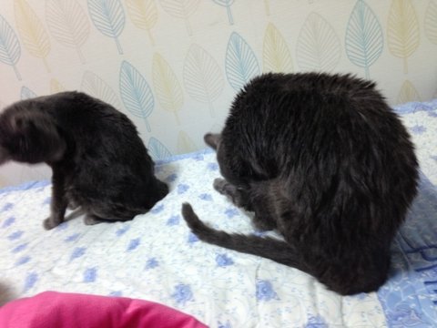 정말 성격만큼 목욕하는 것도 너무 다른 두 냥이삼ㅋㅋ