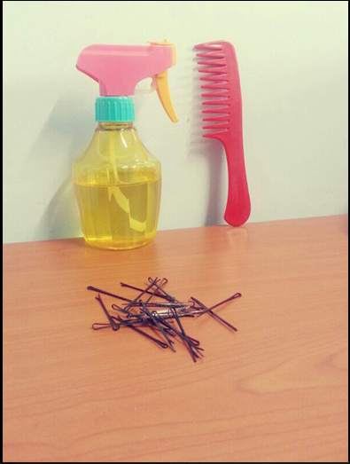 준비물은 간단하게 누구나 집에 있는 실핀, 빗, 분무기