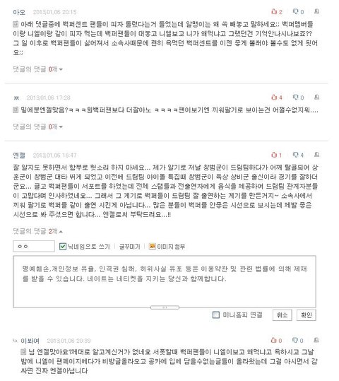 맨날 같은 소속사끼리 너무한다 그러고 백퍼센트 너무 미워하지 말라 그러고 ㅋㅋ