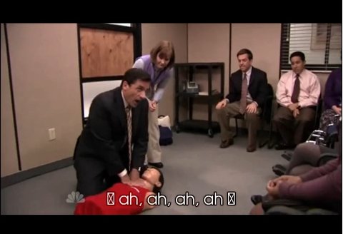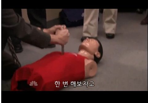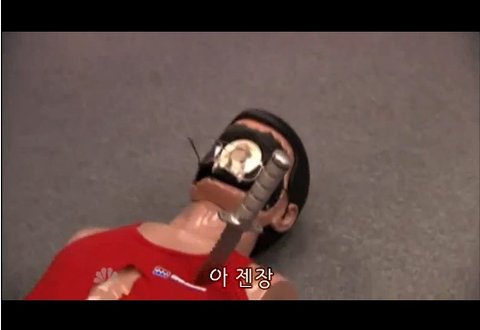 답답한 선생님이 신속한 진행을 위해 노래에 맞춰 응급조치를 하라고 조언해줍니다.