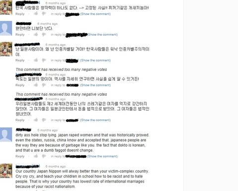 한국분:xxxxx야 그만 거짓말 해라. 일본은 여자들을 성폭행했고 이미 역사적으로 입증이 됬어. 미국, 러시아, 중국도 알고 그거 인정했어. 일본인들이 욕먹는 이유가 너네 쓰레기들 때문이다. 그리고 독도는 우리 땅이고, 너가 바보 xx란건 변하지 않아.