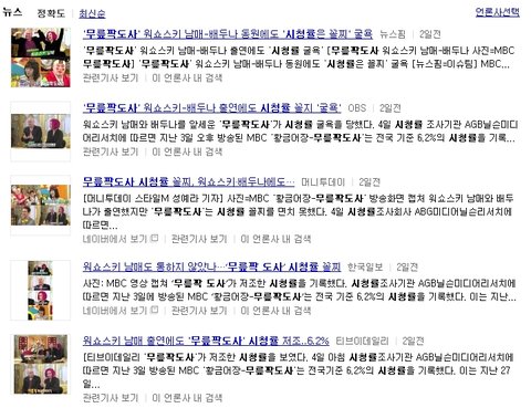 ‘무릎팍 도사’의 사정도 크게 다르지 않았다. 11월 29일 첫 방송은 이지아와 열애설로 화제에 오른 정우성이라는 화제성 인물을 불러놓고도 시청률은 9.3%에 그쳤다.