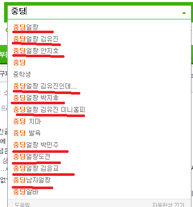 이번엔 "중딩"으로 검색해봤다.