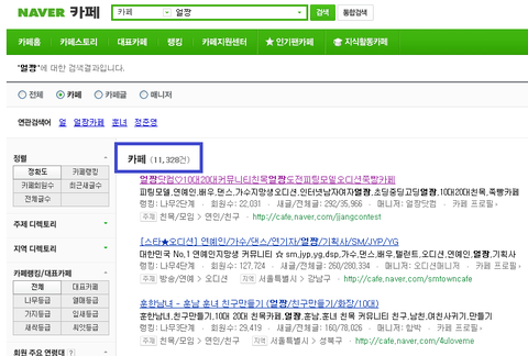 그중에서 젤위에뜬 "얼짱닷컴"이라는 카페에 들어가봤더니....