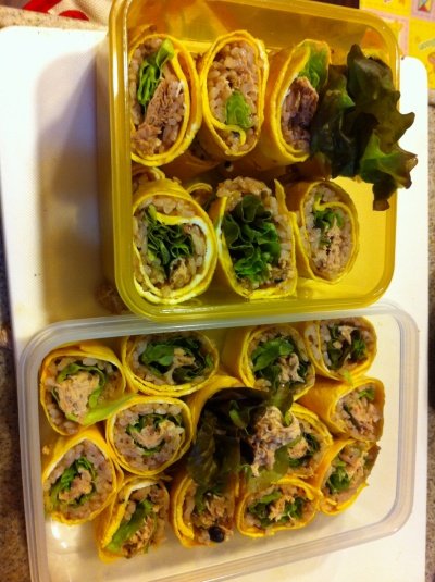 집에 김이 없어서 계란 지단을 부쳐서 만들었어요 언니랑 제 점심 도시락의 메뉴였답니당