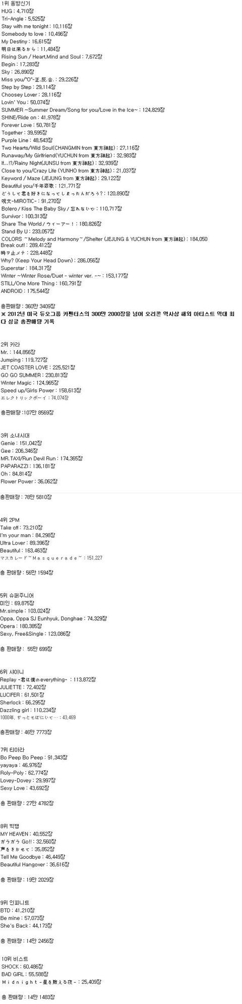한국인들끼리 싱글이니 앨범판매량이니 가지고 쑥덕쑥덕 순위매기는 것 보다는 그래도 일본인한테 물어보는게 제일 맞는거 같아서 ㅇㅇㅇ