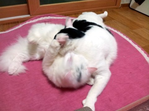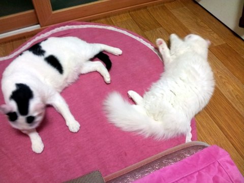 뜨싯한 매트위에 둘이 꾸깃꾸깃..