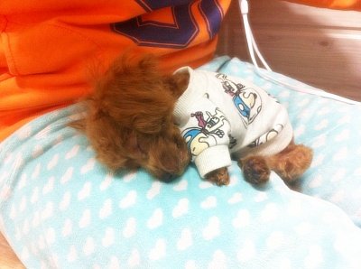 너무 작아서 옷도 없더라구요, 직접 제작한 스누피 옷! 자주가는 애견 카페 사장님이 이제 이거 입힐 애들 없다시며