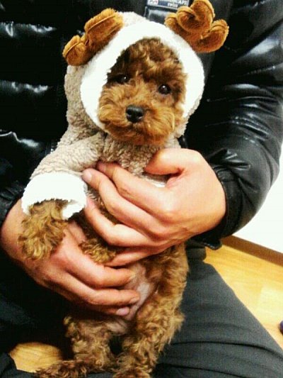 크리스마스날에 선물로 사준 루돌프 옷이에요~따뜻따뜻