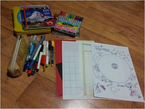 색연필이랑 스티커랑 사인펜이랑 온갖색의 사쿠라 펜까지 ㅋㅋㅋㅋ