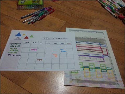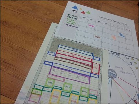 표로 된 주간계획표에는 학원가는 시간이랑 밥먹는시간 다 체크해놓고